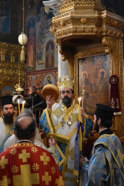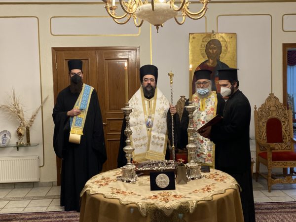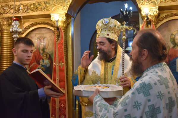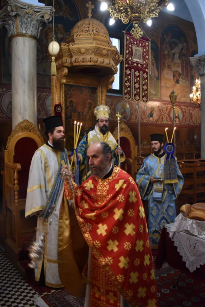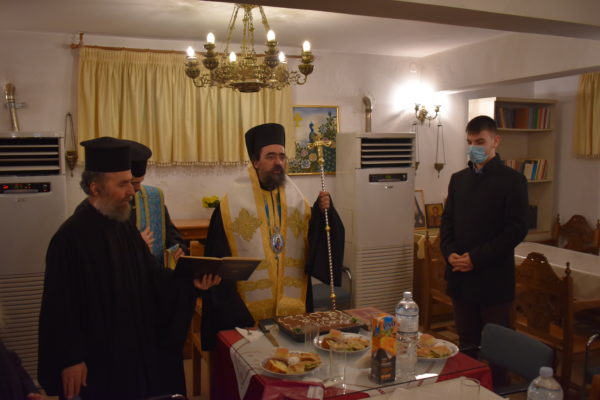Πριν την απόλυση της Θείας Ευχαριστίας ευλόγησε τα εορταστικά κόλλυβα του Αγίου και μικρά «Βασιλοπιτάκια» τα οποία μοιράστηκαν στους μαθητές των σχολείων του χωριού που βρίσκονταν στον Ναό, για να εκκλησιασθούν. Ο Σεβασμιώτατος αφού εξέφρασε την χαρά του για την παρουσία των μαθητών και μαθητριών, επήνεσε τούς διδασκάλους και τους γονείς τους και τους ευχήθηκε καταλλήλως.
