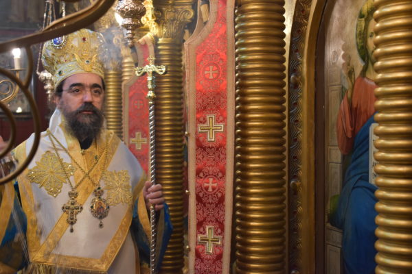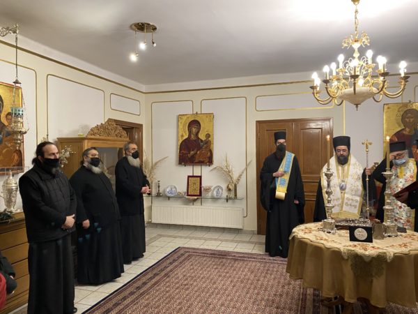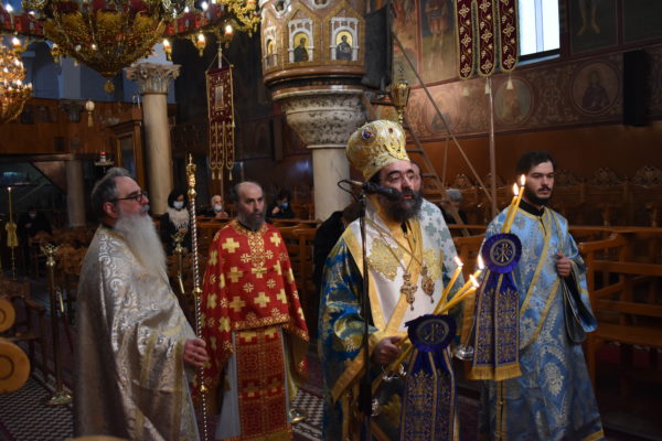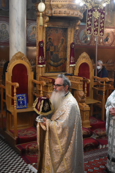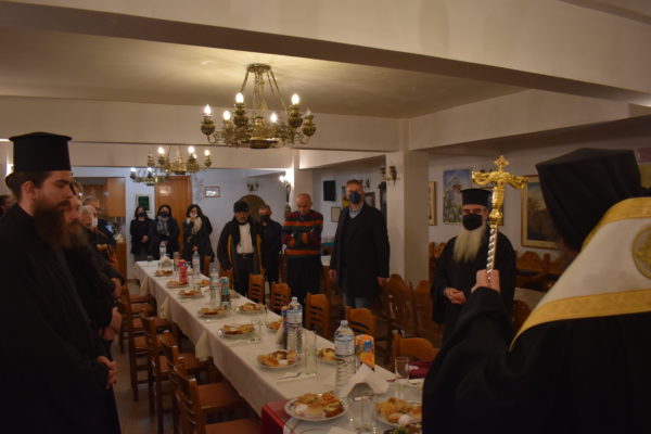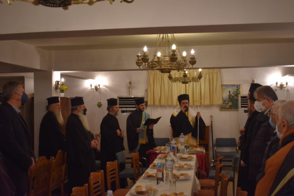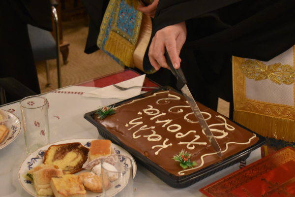 Εν συνεχεία ο Μητροπολίτης ευλόγησε την Βασιλόπιτα τού Εκκλησιαστικού Συμβουλίου, του φιλοπτώχου της Ενορίας και των συνεργατών του Ναού, στην αίθουσα του Ιερού Ναού.