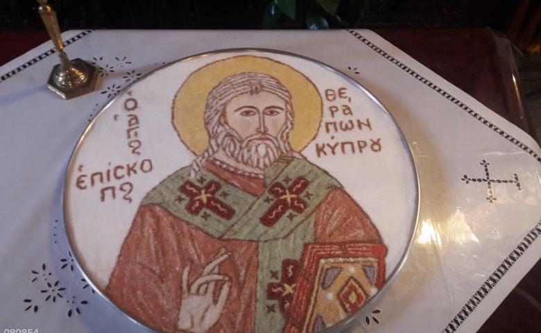 Στη σύντομη ομιλία του ο Σεβασμιώτατος αναφέρθηκε στα μηνύματα από τη ζωή του Αγίου Θεράποντος και επαίνεσε το εκκλησίασμα για την παρουσία του και την ευλάβειά τους προς τους Αγίους, ενώ προ της Απολύσεως ευλόγησε και το κόλλυβο προς τιμήν του Αγίου το οποίο φιλοτέχνησαν οι κάτοικοι του χωριού.