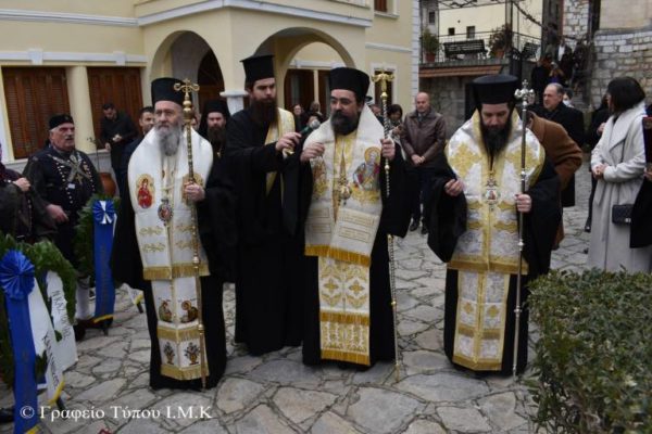 Της Θείας Λειτουργίας προεξήρχε ο Σεβασμιώτατος Μητροπολίτης Ναυπάκτου και Αγίου Βλασίου κ. Ιερόθεος, συλλειτουργούντων των Σεβασμιωτάτων Μητροπολιτών Σισανίου και Σιατίστης κ. Αθανασίου και του οικείου Ποιμενάρχου κ. Καλλινίκου.