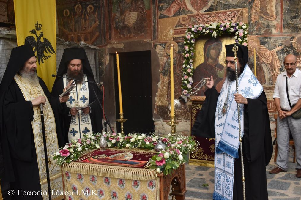 Την Εικόνα της Παναγίας υποδέχθηκαν στην Μονή ο Μητροπολίτης κ. Καλλίνικος μαζί με τον καθηγούμενο της Μονής Αρχιμανδρίτη Νεκτάριο Κακουλίδη.