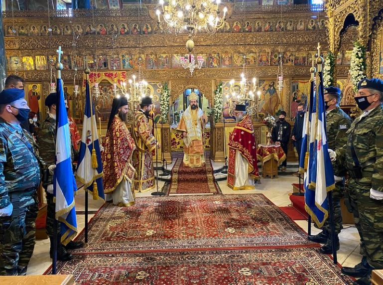 Μετά το πέρας της Θείας Λειτουργίας, τελέσθηκε Δοξολογία επί τη ημέρα των Ενόπλων Δυνάμεων, παρουσία των Αρχών και των Φορέων του τόπου.