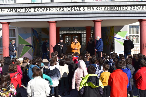 Τέλος, επισκέφθηκαν το 9ο Δημοτικό Σχολείο Καστοριάς στο οποίο μοίρασαν δώρα στα παιδιά ενόψει των εορτών των Χριστουγέννων. Αξίζει να σημειωθεί πως τα δώρα που περιείχαν σχολικά είδη προέρχονταν από την Ιερά Αρχιεπισκοπή Αμερικής.