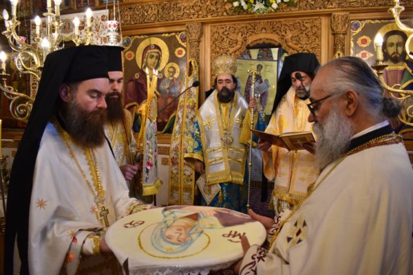 Ανήμερα της Θεομητορικής εορτής της Κοιμήσεως της Θεοτόκου τελέσθηκε η ακολουθία του Όρθρου χοροστατούντος του Σεβασμιωτάτου Μητροπολίτου Κστορίας κ. Καλλινίκου για πρώτη φόρα στην πανήγυρη της καθέδρας του. Ακολούθως τελέσθηκε συλλείτουργο από τους δύο Αρχιερείς. Την ώρα του κοινωνικού αναγνώσθηκε από τον π. Στέφανο Σχοινά η ποιμαντορική εγκύκλιος του Σεβασμιωτάτου αναφερόμενη στην Θεομητορική εορτή.