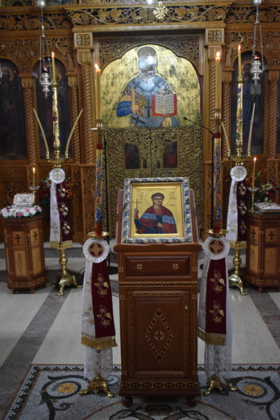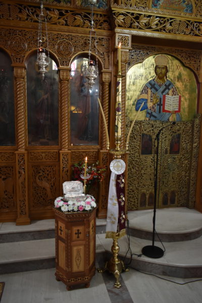 Την επόμενη ημέρα Σάββατο 19 Μαρτίου 2022, εορτή του Αγίου Μάρτυρος Χρυσάνθου λειτούργησε στον Ι.Ν. Αγίας Κυριακής στο ομώνυμο χωριό όπου φυλάσσεται τεμάχιο Ιερού Λειψάνου το Αγίου Χρυσάνθου.