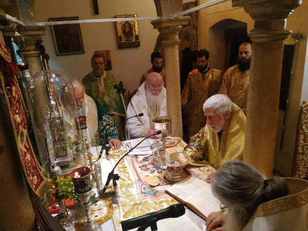 Στο συλλείτουργο προεξήρχε ο Σεβασμιώτατος Μητροπολίτης Φιλαδελφείας κ. Μελίτων, ενώ συλλειτούργησαν οι Μητροπολίτες Ναζαρέτ κ. Κυριακός, Εδέσσης, Πέλλης και Αλμωπίας κ. Ιωήλ και ο οικείος ποιμενάρχης Μητροπολίτης Κερκύρας, Παξών και Διαποντίων Νήσων κ. Νεκτάριος.