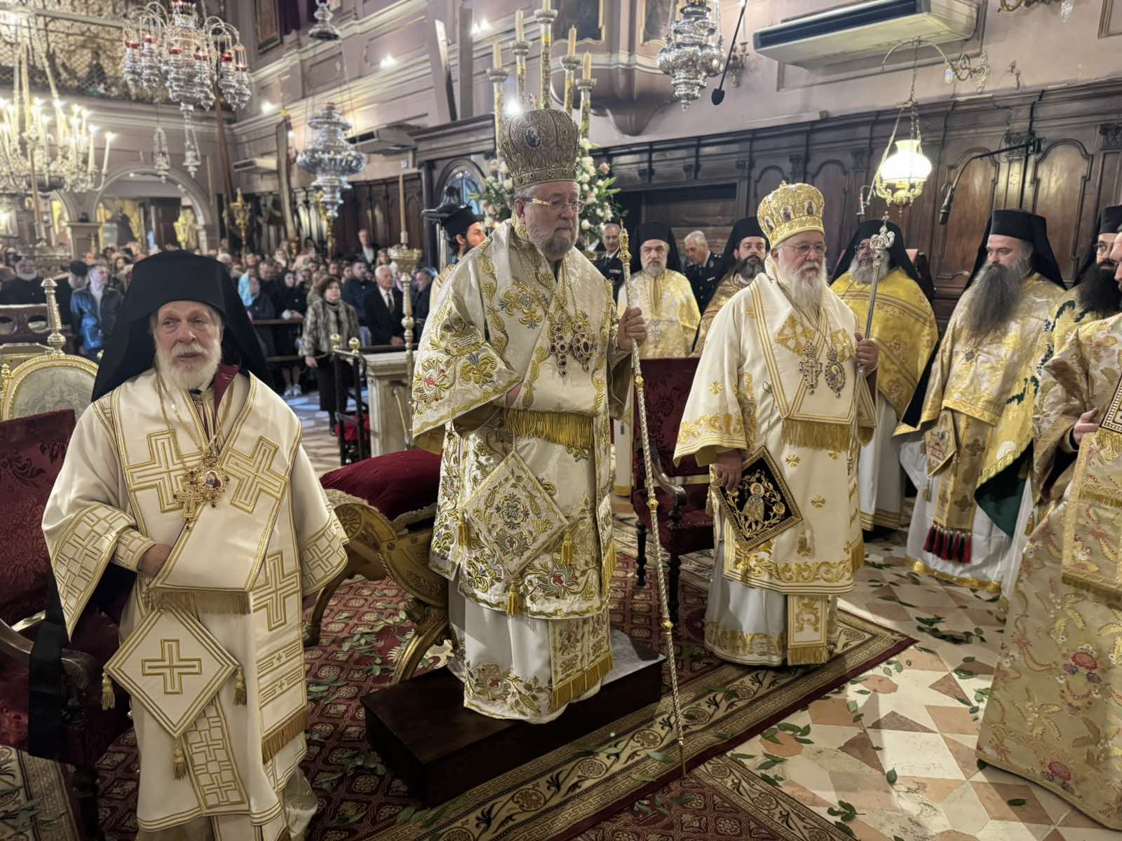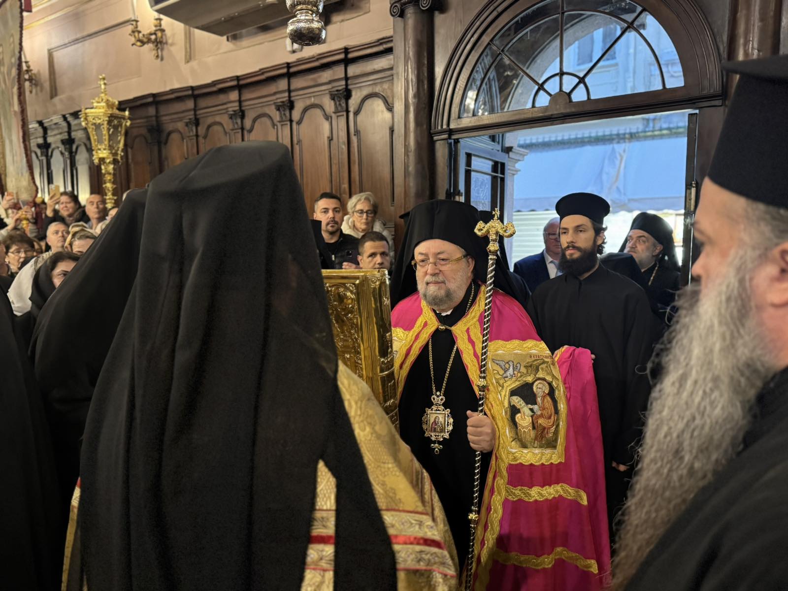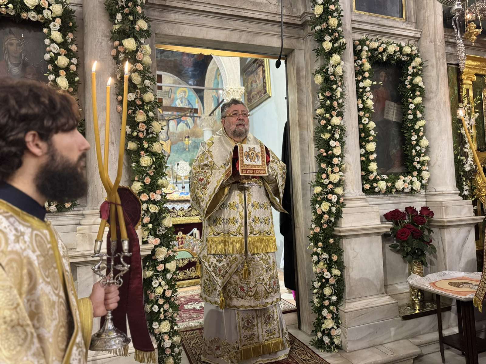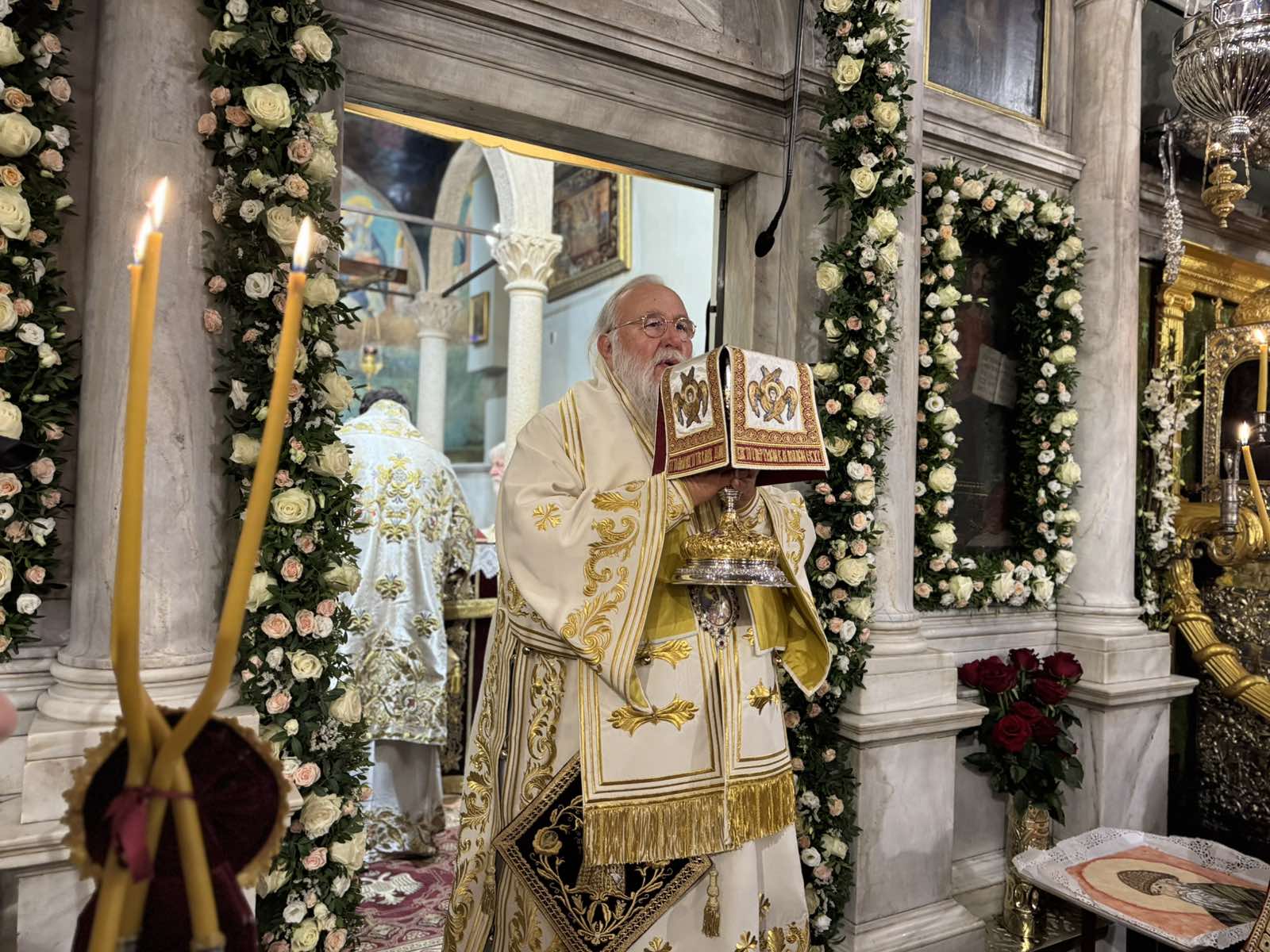 Σήμερα έχουμε μεγάλη χαρά, διότι υποδεχόμεθα δύο αδελφούς συνεπισκόπους και και συλλειτουργούμε μαζί τους, ως ο Άγιος επιθυμεί και η Εκκλησία ορίζει. Τον Σεβασμιώτατο Μητροπολίτη Γέροντα Πριγκηποννήσων κ. Δημήτριο και τον Σεβασμιώτατο Μητροπολίτη Φιλαδελφείας κ. Μελίτωνα. Και οι δύο έρχονται από την βασιλίδα των Πόλεων, την Μητέρα Εκκλησία της Κωνσταντινουπόλεως, το Οικουμενικό Πατριαρχείο. Εκεί ο Άγιος Σπυρίδων παρέμεινε επί σχεδόν 7 αιώνες, από τότε που μεταφέρθηκε το άφθαρτο σκήνωμά του εκ Κύπρου, για να μην περιπέσει εις χείρας αλλοτρίας, και έμεινε μέχρι την Άλωση της Πόλεως, για να έρθει σε εμάς, θησαύρισμα πολύτιμον και ανεκτίμητον.