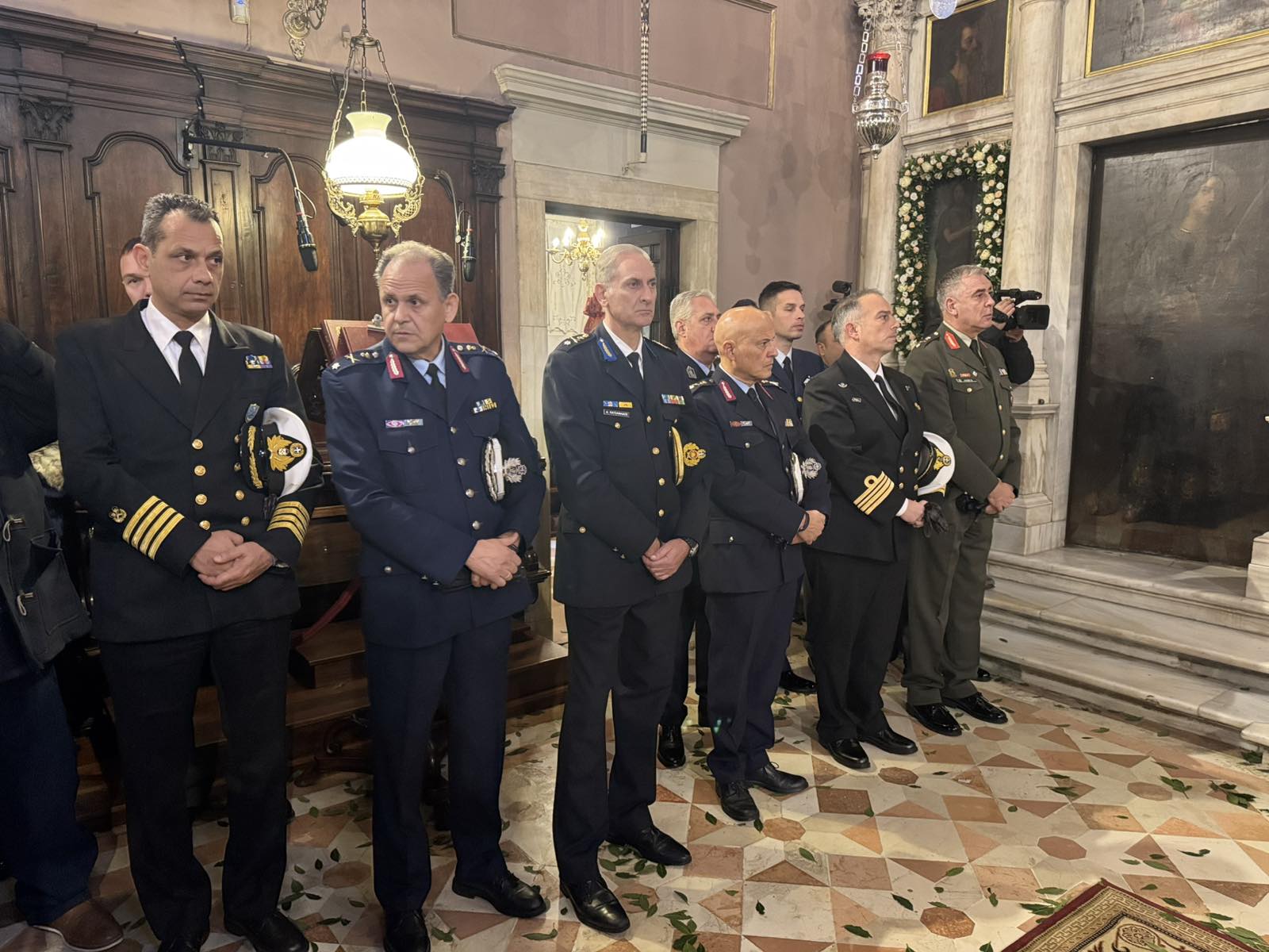 Η χαρά μας όμως πολλαπλασιάζεται, καθότι κοντά μας βρίσκεται ο Αξιότιμος Υπουργός Εθνικής Αμύνης, ο οικείος, ο Κερκυραίος κ. Νικόλαος Δένδιας. Γνωρίζουμε και εκτιμούμε βαθύτατα, κύριε Υπουργέ, την βαθιά σας πίστη. Γνωρίζουμε την αγάπη σας και τον σεβασμό σας για τον Άγιο Σπυρίδωνα. Γνωρίζουμε όμως και την αγάπη σας και την αδιάπτωτο διακονία σας για την πατρίδα μας. Υπηρετείτε σε ένα νευραλγικό υπουργείο, αυτό που κάνει όλους μας να αισθανόμαστε ασφαλείς για τα σύνορά μας, για την αντιμετώπιση εξωτερικών κινδύνων, για την διατήρηση της εθνικής μας υπερηφάνειας λόγω του ότι οι ένοπλες δυνάμεις είναι αυτές που εγγυώνται τη διατήρηση της ιστορίας, της παραδόσεως, της ελευθερίας του λαού μας κι εσείς αναλίσκεσθε καθημερινώς στον αγώνα να είναι σύγχρονες, να εμπνέουν σεβασμό, να λειτουργούν με ενσωμάτωση των νέων τεχνολογιών, με ισορροπία, με δυναμισμό, αλλά και εμπνέοντας ασφάλεια.