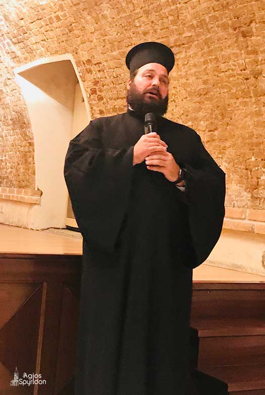 Την εκδήλωση συντόνισε ο Πρωτ. π. Θεμιστοκλής Μουρτζανός Γενικός Αρχ. Επίτροπος της Ι.Μ. Κερκύρας ο οποίος στην τοποθέτησή του επεσήμανε ότι υπάρχει πρόβλημα με την αποδόμηση της ιστορίας στους καιρούς μας και άρνηση από μερίδα της πολιτικής και πανεπιστημιακής ελίτ, για την προσφορά της Εκκλησίας, στην διάσωση του Ελληνισμού κατά την τουρκοκρατία, ότι ήταν αντίθετη με τον Διαφωτισμό και με την ελευθερία του Γένους και συνεργάστηκε τόσο με την Οθωμανική, όσο και με την Βενετική εξουσία, ότι δεν υπήρχαν κρυφά σχολειά, κοντολογίς η Εκκλησία κατηγορείται από αυτή την ελίτ ότι δεν πρόσφερε τίποτα την περίοδο της τουρκοκρατίας και φραγκοκρατίας. Όμως από την ιστορική αλήθεια και μέσα από το βιβλίο του κ. Καραμπελιά αποδεικνύεται ότι η Εκκλησία δεν ήταν αντίθετη. Στους κόλπους Της υπήρχαν διάφορες απόψεις. Υπήρχε και η αντίθεση και η σύνθεση και το υπέρ. Όλοι ήταν Χριστιανοί Ορθόδοξοι και ακριβώς αυτή η ταυτότητα διατήρησε την Ελληνικότητα. Το κρυφό σχολειό φυσικά και υπήρχε, διότι η κατάσταση της παιδείας ήταν τραγική εκείνους τους αιώνες, όπως επίσης και η Εκκλησία συνετέλεσε ώστε να κρατηθεί ο Ελληνισμός ακέραιος, μέσα από την θρησκευτική πίστη και μέσα από την γλώσσα και την ταυτότητα.