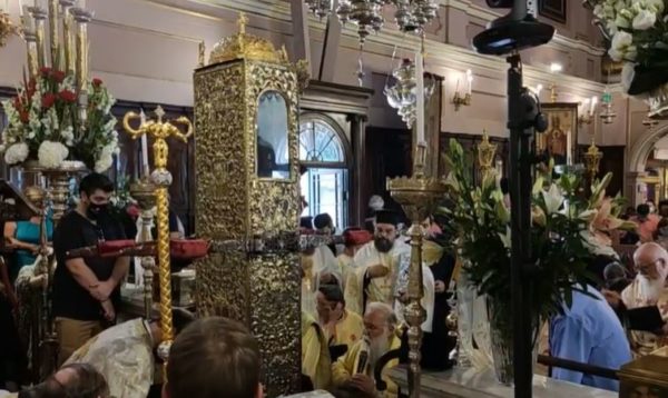 Θα γίνει μόνο μία μικρή περιφορά πέριξ του ιερού ναού προς ευλογία του τόπου από τον Άγιό μας.