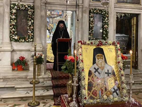 Ο ομιλητής επεσήμανε ακόμη ότι ο Άγιος Νεκτάριος, έγινε πραγματικός Κανόνας Πίστεως για όλους εμάς, που προσπαθούμε να δικαιολογούμε τις κατά καιρούς όχι και τόσο χριστιανικές μας αντιδράσεις και νοοτροπίες, καθώς γνωρίζουμε το θέλημα του Θεού, αλλά δεν το πράττουμε. Ας αλλάξουμε, λοιπόν, πορεία, ας διορθωθούμε, ας βάλουμε αρχή και όταν έλθει εκείνη η ευλογημένη ώρα να εμφανισθούμε μπροστά στον αδέκαστο Κριτή, να αποφασίσει Εκείνος να συνευφραινόμεθα με τον Άγιο Νεκτάριο και όλους τους Αγίους στη Βασιλεία του Θεού.