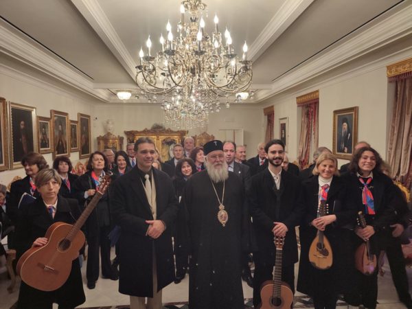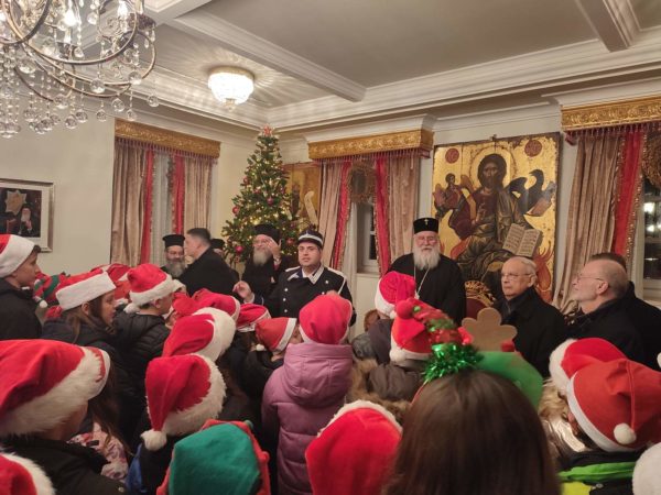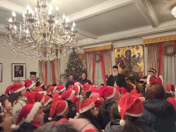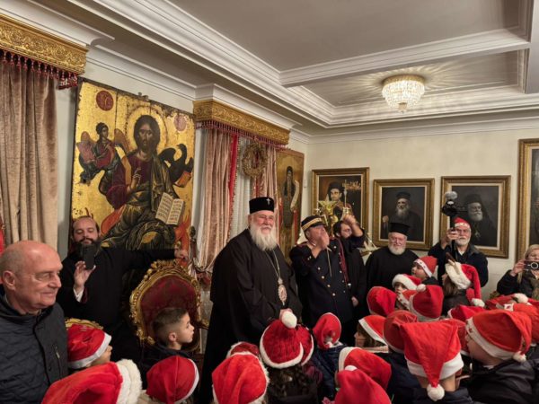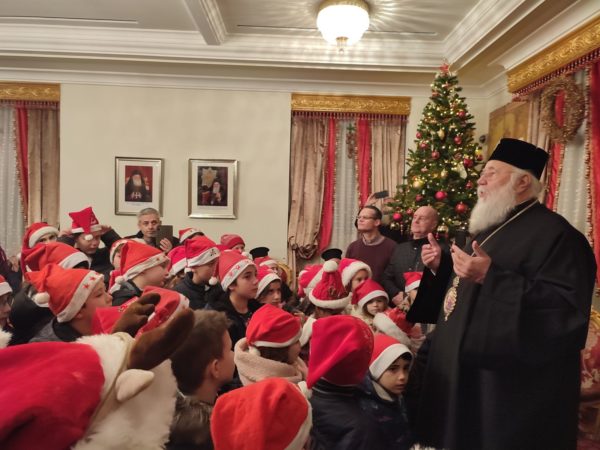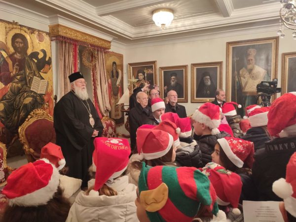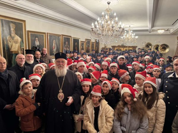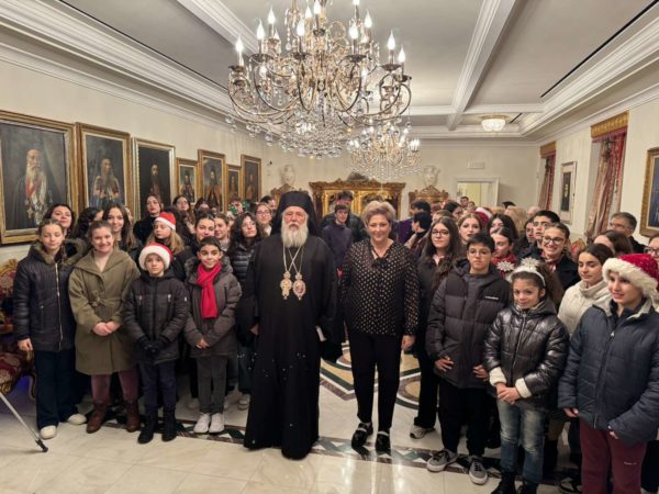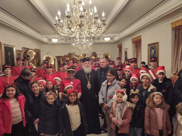 Στη συνέχεια, στο Επισκοπείο της Ιεράς Μητροπόλεως στα Μουράγια, ο Σεβασμιώτατος Μητροπολίτης Κερκύρας, Παξών και Διαποντίων Νήσων κ. Νεκτάριος άκουσε τα κάλαντα και επίκαιρους εορταστικούς ύμνους από την Παιδική και Γυναικεία Χορωδία «ΑΓΙΟΣ ΣΠΥΡΙΔΩΝ», από τις Φιλαρμονικές της πόλης την «Παλαιά», την «Καποδίστριας» και την «Μάντζαρος», όπως επίσης και από την Κερκυραϊκή Καντάτα και Μαντολινάτα».