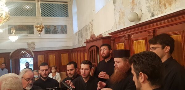 Στην θεία λειτουργία έψαλλε η Βυζαντινή Χορωδία υπό τη διεύθυνση του Αρχιμ. Σπυρίδωνος Σκορδίλη.