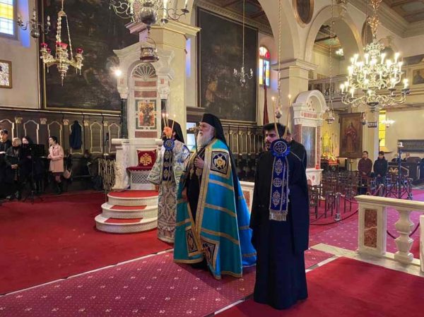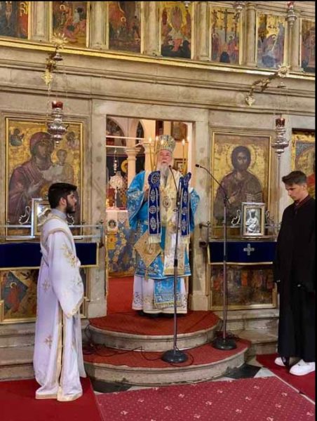 Στην προσλαλιά του κατά τη Θεία Λειτουργία, έλαβε αφορμή από το αποστολικό ανάγνωσμα στην προς Εβραίους επιστολή του Αποστόλου Παύλου « όθεν όφειλε κατά πάντα τοις ανθρώποις ομοιωθήναι » και ανέλυσε θεολογικά την σάρκωση του Υιού και Λόγου του Θεού εκ Πνεύματος Αγίου και με την ελεύθερη βούληση και συγκατάθεση της Παναγίας μας προκειμένου να φανερωθεί το προαιώνιον και αποκεκρυμμένο μυστήριον της ενσάρκου οικονομίας του Θεού για την σωτηρία του σύμπαντος κόσμου, που εξ αγάπης τελείας για τον άνθρωπο, ο Θεός ενηνθρώπισε και έλαβε δούλου μορφή, όμοιος κατά πάντα προς τον άνθρωπον, ίνα θεώση τον άνθρωπο.