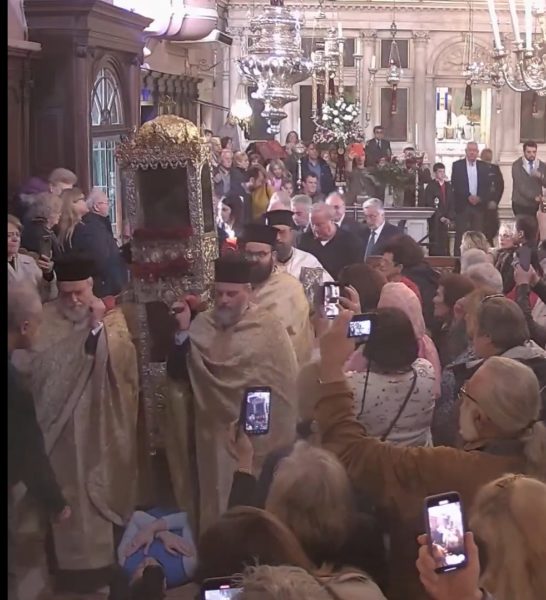 Τόνισε ακόμη ότι οι άγιοι όχι μόνο ησπάσθησαν αλλά και βίωσαν το θαυμαστό γεγονός της αναστάσεως και αυτό έκανε και ο Άγιος Σπυρίδωνας, τον οποίο η τοπική Εκκλησία λιτάνευσε το Μέγα Σάββατο για το θαυμαστά που έκανε για τον τόπο. Η Ανάσταση του Κυρίου εντυπώθηκε στην ζωή του Αγίου στον παρόντα κόσμο, αλλά και στην αιωνιότητα, και γι’ αυτό φέρει το σημείο της αναστάσεως στην αφθαρσία του. Με τις πρεσβείες του Αγίου Σπυρίδωνος λοιπόν ας συνεχίζουμε κι εμείς να είμαστε φορείς του αναστασίμου φωτός!