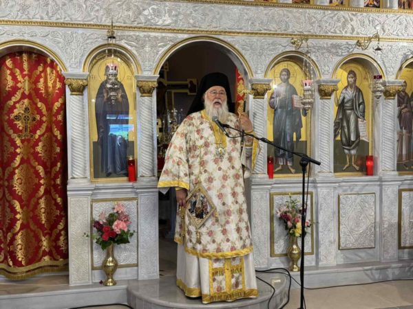 Στην ομιλία του, ο Σεβασμιώτατος έλαβε αφορμή από την εορτή της Αγίας Μεγαλομάρτυρος Ειρήνης αφού προηγουμένως εξήρε την αρετή της ειρήνης την οποία μάς την άφησε ο Κύριός μας ως σημείο της παρουσίας Του στη ζωή μας. Ιδιαίτερα στο ευαγγέλιο της διαθήκης πριν το πάθος του, είπε στους μαθητές «Ειρήνην τὴν ἐμὴν δίδωμι ὑμῖν» και ιδιαίτερα δε, ο Κύριός μας, ο Λόγος του Θεού, όταν σαρκώθηκε και γεννήθηκε ο Θεάνθρωπος Ιησούς, στο θεοδέγμων σπήλαιον της Βηθλεέμ, οι άγγελοι που κατά θαυμαστόν τρόπον, ανέβαιναν και κατέβαιναν από τον ουρανόν εις την Βηθλεέμ, ανήγγειλαν την εγκατάσταση της ειρήνης στον κόσμο, «Δόξα ἐν ὑψίστοις θεῷ καὶ ἐπὶ γῆς εἰρήνη ἐν ἀνθρώποις εὐδοκία».