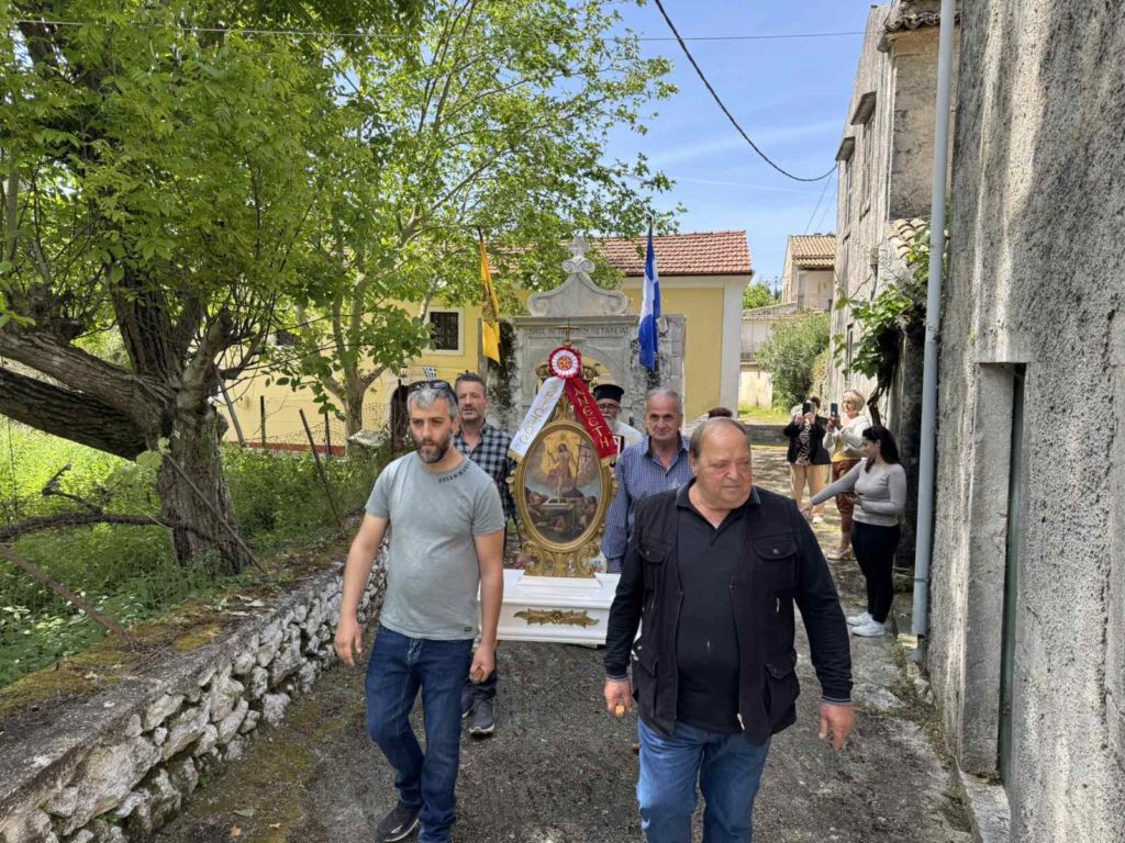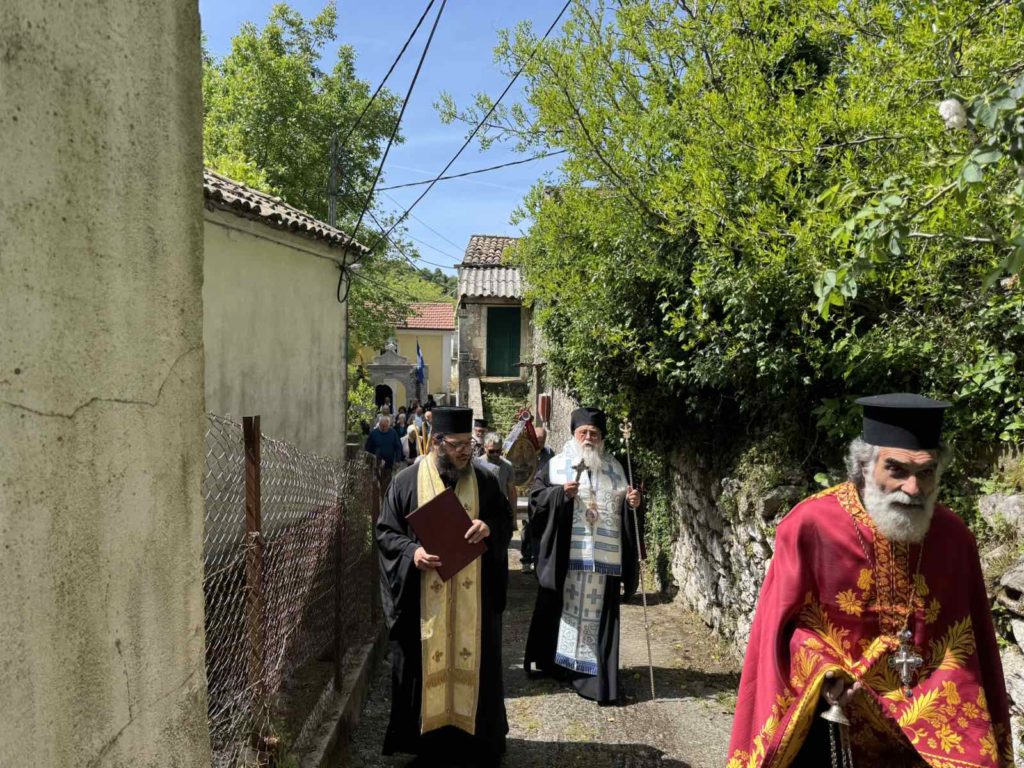 Ο Σεβασμιώτατος λειτούργησε και ομίλησε με τους λιγοστούς κατοίκους του χωριού. Στο τέλος της Θείας Λειτουργίας πραγματοποιήθηκε λιτάνευση της Ιεράς Εικόνας του Αγίου Νικολάου καθώς και της Εικόνας της Αναστάσεως του Κυρίου μας, όπως συνηθίζεται στην Κέρκυρα αυτή την πασχαλινή περίοδο.