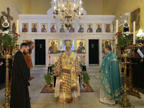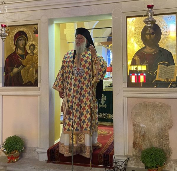 Ο Σεβασμιώτατος στη θεία λειτουργία αναφέρθηκε στο ιστορικό της ευρέσεως του Τιμίου Σταυρού από την Αγία Ελένη και την Ύψωση από τον πατριάρχη Ιεροσολύμων Μακάριο. Το ζωοποιών ξύλο επί του οποίου θυσιάστηκε ο Ιησούς Χριστός, είναι το σύμβολο της νίκης κατά του θανάτου και της δωρεάς της αιωνιότητος στον άνθρωπο, αφού δια του σταυρικού θανάτου συμφιλίωσε, ο Ιησούς Χριστός τον πεπτωκότα άνθρωπο με τον ίδιο τον Δημιουργό Του, τον Θεό και έκτοτε έρευσαν τα ελέη του Θεού επί του Σταυρού και επλούτησαν την ανθρωπότητα. Έτσι μας εξαγόρασε από την δέσμευση που είχαμε από τον διάβολο που ο άνθρωπος με τη δική του θέληση παγιδεύτηκε και έγινε δέσμιος του Άδου. Όμως ο Θεός τον άνθρωπο τον δημιούργησε με τα δικά του χαρακτηριστικά, δίνοντας του, τον πλούτο της αγάπης και το δώρο του αυτεξουσίου. Όταν δεσμευθεί το αυτεξούσιο του ανθρώπου, τότε παύει να είναι κατ’ εικόνα Θεού και δεν έχει τη δυνατότητα της θέωσης. Σήμερα λοιπόν οι άνθρωποι ενώ ο Θεός, μας ελευθέρωσε, επανερχόμεθα στη δέσμευση την πνευματική, με αποτέλεσμα πολλές φορές να στερούμεθα και την δέσμευση την σωματική, όταν υποτασσόμεθα στα κελεύσματα για τον οποίων μας υπόσχονται ανετότερη και ασφαλέστερη ζωή. Όταν όμως ο άνθρωπος έχει χάσει το αυτεξούσιο του, το μέγιστο δώρο του θεού, τότε μοιάζει προς τα άλογα ζώα. Σήμερα λοιπόν, σας επαναλαμβάνω το του αποστόλου Παύλου (στήκετε τη ελευθερία , καὶ μὴ πάλιν ζυγῷ δουλείας ἐνέχεσθε).