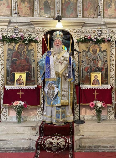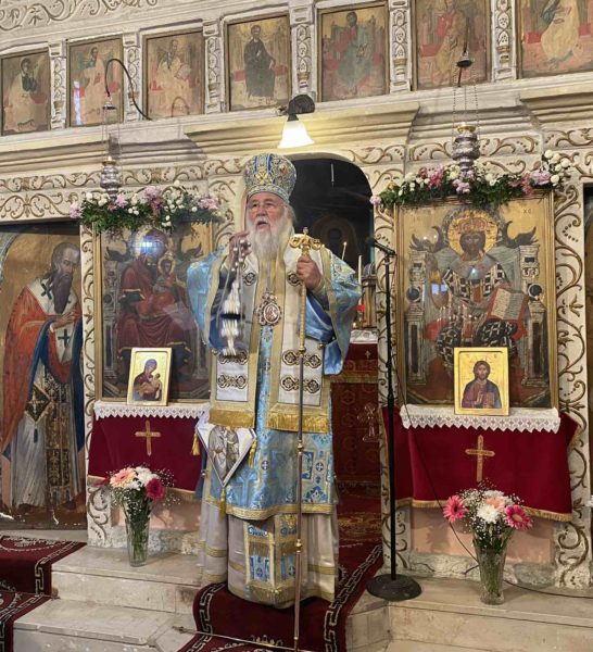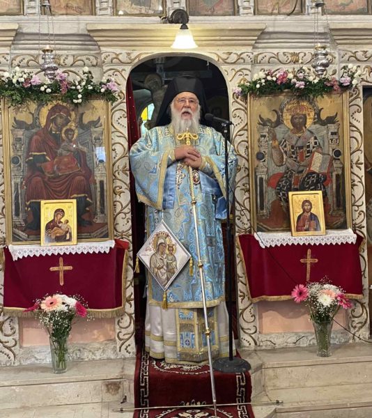 Ο Σεβασμιώτατος στην ομιλία του αναφέρθηκε στο πρόσωπο της Υπεραγίας Θεοτόκου λαμβάνοντας αφορμή από το αποστολικό ανάγνωσμα και εξήγησε στους ανθρώπους τις προτυπώσεις της Παναγίας μας από τη Παλαιά Διαθήκη την οποία προκατήγγειλαν οι προφήτες μεταξύ των οποίων και ο μεγαλοφωνότατος των προφητών Ησαΐας.