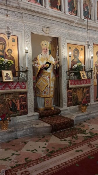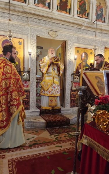 Στην Κέρκυρα τελέστηκε η Αρχιερατική Θεία Λειτουργία, ιερουργούντος του Σεβασμιωτάτου Μητροπολίτου Κερκύρας, Παξών και Διαποντίων Νήσων κ. Νεκταρίου, στον Ιερό Ναό του Παντοκράτορος στο Καμπιέλο, όπου, κατά παράδοσιν τελείται η πανήγυρη του Αγίου, ενώ εκεί βρίσκονταν από την παραμονή τα λείψανα του Αγίου.