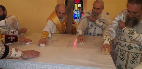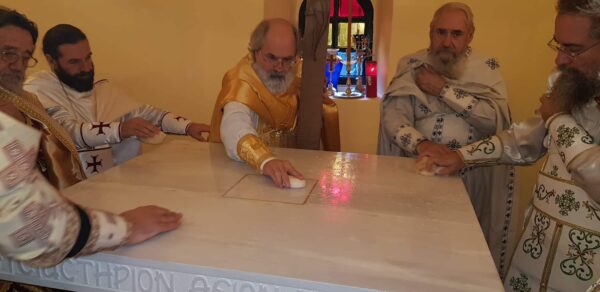 Μιλώντας προς τους προσκυνητές της μονής ο Σεβ. κ. Νεκτάριος τόνισε ότι η παράδοση της εκκλησιαστικής ζωής έχει ως κέντρο της τον ναό, τα άγια των αγίων, την αγία Τράπεζα, εκεί όπου τελείται το αναίμακτο μυστήριο της θείας Ευχαριστίας. Η Εκκλησία, με επικεφαλής τον επίσκοπό της, τελεί την ειδική ακολουθία για την διασαλευθείσα αγία τράπεζα, ουσιαστικά επανεγκαινιάζοντας τον ιερό ναό, για να συνεχίσει να λατρεύεται σ αυτόν κατά την εκκλησιαστική τάξη ο Θεός.