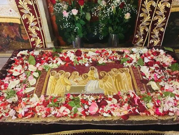 Καταλήγοντας ο Σεβασμιώτατος, κάλεσε τους πιστούς να γονατίσουν μπροστά από την εικόνα της Θεομήτορος, ώστε η κεκλεισμένη Αυτή πύλη να είναι ανεωγμένη στον ουρανό.
