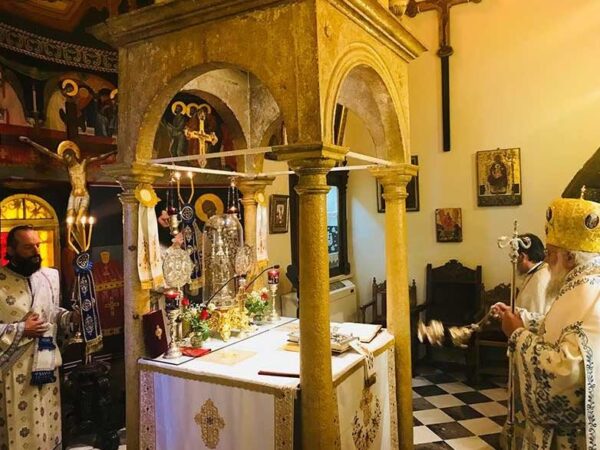 Επιπροσθέτως, ο Σεβασμιώτατος υπογράμμισε ότι η Παναγία μας είναι η κεκλεισμένη πύλη καθότι πρώτον, διά Αυτής μόνο ο ίδιος ο Θεός εισήλθε και εκφράστηκε το “σεσιγημένον Μυστήριον” της σωτηρίας του ανθρωπίνου γένους.