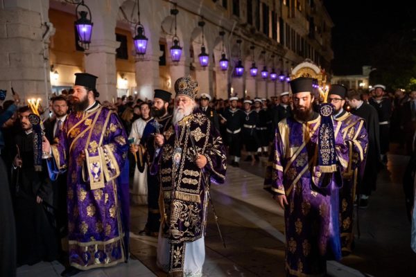 Σε κλίμα κατάνυξης και με τον ξεχωριστό τρόπο με τον οποίο διεξάγονται οι λιτανείες στην Κέρκυρα έγινε, το βράδυ της Μεγάλης Παρασκευής, η λιτανεία του Επιταφίου του Μητροπολιτικού Ναού Υπεραγίας Θεοτόκου Σπηλαιωτίσσης Κέρκυρας, στην οποία προεξήρχε ο Μητροπολίτης Κερκύρας, Παξών και Διαποντίων Νήσων κ. Νεκτάριος.