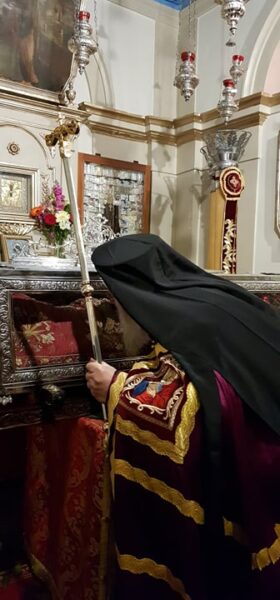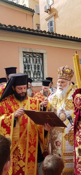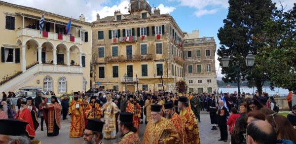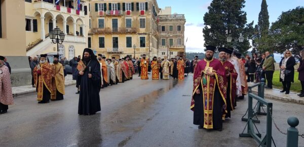 Στον Μητροπολιτικό Ναό Υπεραγίας Θεοτόκου Σπηλαιωτίσσης, όπου φυλάσσεται το ιερό σκήνωμα της Αγίας, τελέστηκε Αρχιερατική Θεία Λειτουργία ιερουργούντος του Σεβασμιωτάτου Μητροπολίτου Κερκύρας, Παξών και Διαποντίων Νήσων κ. Νεκταρίου. Κατά την Θεία Λειτουργία ομίλησε επικαίρως ο Αρχιμανδρίτης Χερουβείμ Βελέτζας, Διευθυντής Προσωπικού της Ιεράς Συνόδου της Εκκλησίας της Ελλάδος και Ιεροκήρυκας της Ιεράς Μητροπόλεως, ο οποίος αναφέρθηκε στην πίστη στον Χριστό, που δεν μεταδίδει φθορά και θάνατο, αλλά ζωή. Η Κυριακή της Ορθοδοξίας είναι μία συνεχής ειρηνική διαδήλωση επί 12 αιώνες, ότι η πίστη νικά κάθε φόβο, καθώς η ορθοδοξία είναι αγάπη και η αγάπη νικά κάθε φόβο.