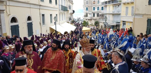 Το Συνοδικό της Ορθοδοξίας διαβάστηκε μπροστά από το ναό της Παναγίας των Ξένων, ενώ σε σύντομη προσφώνησή του ο Σεβασμιώτατος Μητροπολίτης Κερκύρας, Παξών και Διαποντίων Νήσων κ. Νεκτάριος τόνισε ότι η Ορθόδοξη Εκκλησία μας διαφύλαξε την αυτοσυνειδησία του λαού μας, την επίγνωση δηλαδή του λαού μας ότι είναι ξεχωριστός σε σχέση με τα ρεύματα τα πολιτιστικά και θρησκευτικά είτε εκ Δύσεως και των μισσιοναρίων της είτε και εξ Ανατολής, των αλλοθρήσκων. Η Εκκλησία μας διαφύλαξε την ενότητα του λαού μας, καθώς βοήθησε να μην διασπαστεί, να μην διαλυθεί ο λαός μέσα από τις προσωπικές διαμάχες και τους εγωισμούς. Η Εκκλησία μας, τέλος, βοήθησε τον λαό μας να διατηρήσει την ταυτότητά του, να μείνει ελεύθερος και αυτό θα κάνει και στους καιρούς μας, παρά τις πολλές ιδέες που διακινούνται και επηρεάζουν. Στον αγώνα αυτό τα ιερά λείψανα των Αγίων μας, όπως της Αγίας Θεοδώρας της Αυγούστης, είναι σημεία αυτής της αυτοσυνειδησίας, της ενότητας και της ταυτότητάς μας.