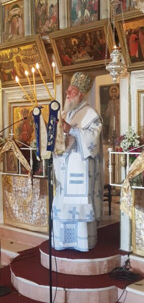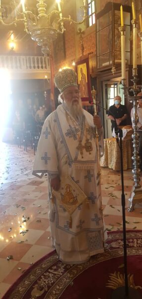 Στον πανηγυρίζοντα Iερό Nαό Υπεραγίας Θεοτόκου Οδηγητρίας Αγραφών στην Βόρεια Κέρκυρα λειτούργησε το πρωί της Κυριακής 23 Αυγούστου 2020 ο Σεβασμιώτατος Μητροπολίτης Κερκύρας, Παξών και Διαποντίων Νήσων κ. Νεκτάριος.