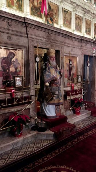 Αφού ευχαρίστησε τον άξιο εφημέριο αρχιμ π Χρυσόστομο Κουτσούρη που εργάζεται με αυταπάρνηση καί ζήλο ώστε η ενορία να είναι από τις καλύτερες οργανωμένες σε πνευματικό και ιεραποστολικό επίπεδο, ο Σεβασμιώτατος ευχήθηκε σε όλους τούς κατοίκους να έχουν την Χάρι του γεννηθέντος Κυρίου μας στην ζωή τους, στην καρδιά τους και στην σκέψη τους ώστε οχυρωμένοι πνευματικά να συνεχίζουν τον αγώνα τους στην νέα χρονιά που έρχετε.