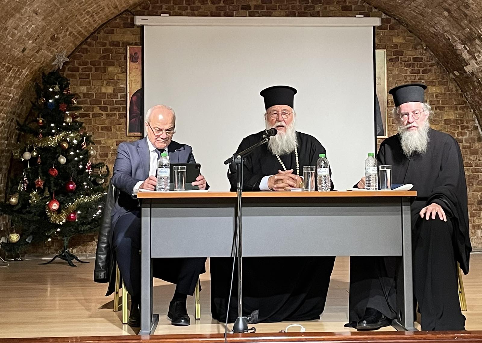 Στη σύναξη έγιναν δύο εισηγήσεις. Στην πρώτη μίλησε ο καθηγητής της Δογματικής της Θεολογικής Σχολής του Πανεπιστημίου Αθηνών κ. Νικόλαος Ξιώνης, με αφόρμηση εκ του λόγου του Μεγάλου Αθανασίου «Περί ενανθρωπήσεως».