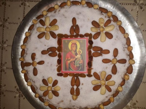 Στο τέλος της θείας λειτουργίας Σεβ. ο κ. Νεκτάριος διάβασε και την ευχή των κολύβων, ακολουθώντας το έθιμο του νησιού προς τιμήν της Παναγίας της Πολυσπορίτισσας, όπως ονομάζουν αυτήν την ημέρα οι Κερκυραίοι, προσφέροντας «σπερνά» για την εορτή.