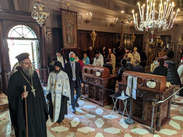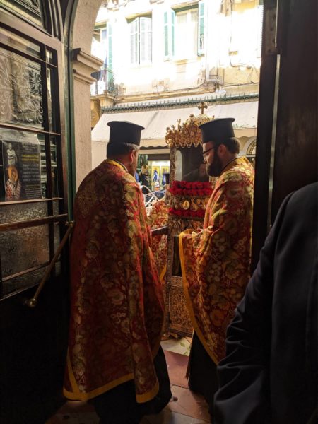 Εντός του Ιερού Ναού, λόγω της πανδημίας, και με τήρηση των μέτρων προστασίας της δημόσιας υγείας, έγινε το πρωί της Κυριακής 1ης Νοεμβρίου η λιτάνευση του ιερού σκηνώματος του Αγίου Σπυρίδωνος, για την ανάμνηση του θαύματος με το οποίο ο Άγιος διέσωσε το νησί από την πανώλη το 1673.