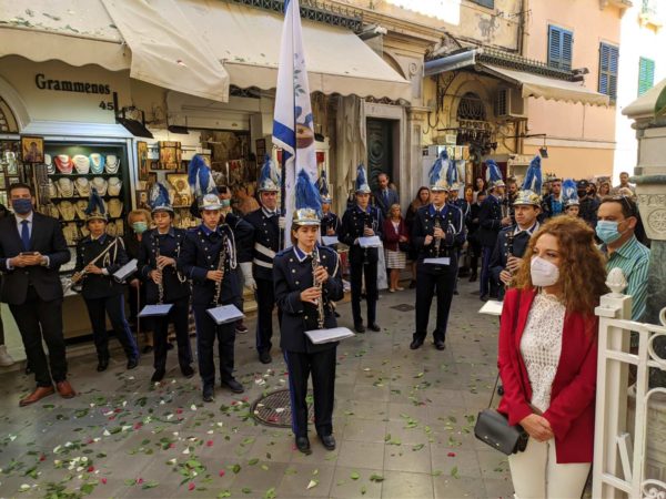 Στις δύο εξόδους του ναού παιάνισαν οι Φιλαρμονικές της Κέρκυρας, η Παλαιά, η «Μάντζαρος» και η «Καποδίστριας».