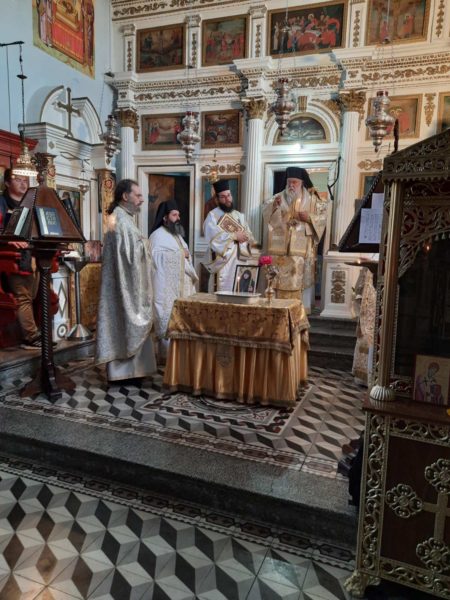 Στην θεία λειτουργία συλλειτούργησε ο νέος ηγούμενος της Ιεράς Μονής Παλαιοκαστριτίσσης Αρχιμ. Σωσίπατρος Ασπιώτης, ενώ έψαλλαν η γερόντισσα Ευφημία και μοναχές από την Ιερά Μονή Παντοκράτορος Αγίου Αθανασίου Αγρού.