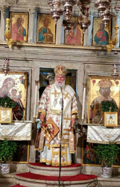 Κατά τη Θεία Λειτουργία ο Σεβασμιώτατος έλαβε αφορμή για το κήρυγμά του από το Ευαγγελικό και Αποστολικό ανάγνωσμα, τα οποία αναφέρονταν στο μυστήριο του Σταυρού, το οποίο πρόκειται μετά από δυο ημέρες να εορταστεί με την Παγκόσμια Ύψωση του Τιμίου Σταυρού.