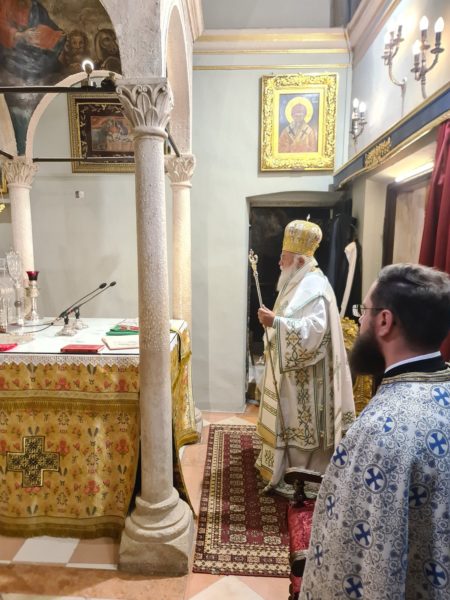 Ο Σεβασμιώτατος Μητροπολίτης Κερκύρας, Παξών και Διαποντίων Νήσων κ. Νεκτάριος, κατά την Ε΄ Κυριακή του Ματθαίου, λειτούργησε και ομίλησε στο ιερό προσκύνημα του Αγίου Σπυρίδωνος.