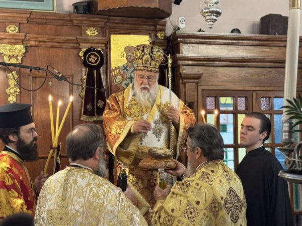 Εις τον ως άνω Ιερό Ναό εφημερεύει ο Αιδεσιμολογιώτατος Πρωτ. Δημήτριος Κοσκινάς, στενός συνεργάτης του Σεβασμιωτάτου, ο οποίος εργάζεται αφιλοκερδώς και στα γραφεία της Ιεράς Μητροπόλεως. Επίσης, στην ενορία του έχει αναπτύξει ένα πρωτοποριακό κοινωνικό και φιλανθρωπικό έργο, καθώς λειτουργεί το διενοριακό συσσίτιο. Εκτός του π. Δημητρίου, ο Σεβασμιώτατος λειτούργησε και με τον Πρωτ. π. Σπυρίδωνα Προβατά, προϊστάμενο του Μητροπολιτικού Ναού και Αρχιερατικό Επίτροπο της Βορείου Κερκύρας, καθώς και τον Διάκονό του π. Ευσέβιο Πανδή. Στην πανηγυρική Θεία Λειτουργία έψαλλε η πολυφωνική χορωδία του Ιερού Ναού υπό τη διεύθυνση του κ. Ιωάννου Καρύδη. Ο Ιερός Ναός κατεκλύσθη εντός και εκτός από πλήθος φιλεόρτων Χριστιανών.