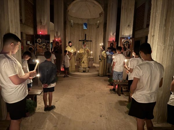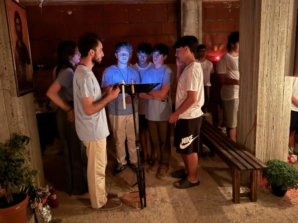 Μέσα σε μια κατανυκτική ατμόσφαιρα, τα παιδιά έψαλλαν στον εσπερινό, στον όρθρο και στη Θεία Λειτουργία υπό τη διεύθυνση του υπαρχηγού της κατασκήνωσης, κ. Σπυρίδωνος Βασιλειάδη.
