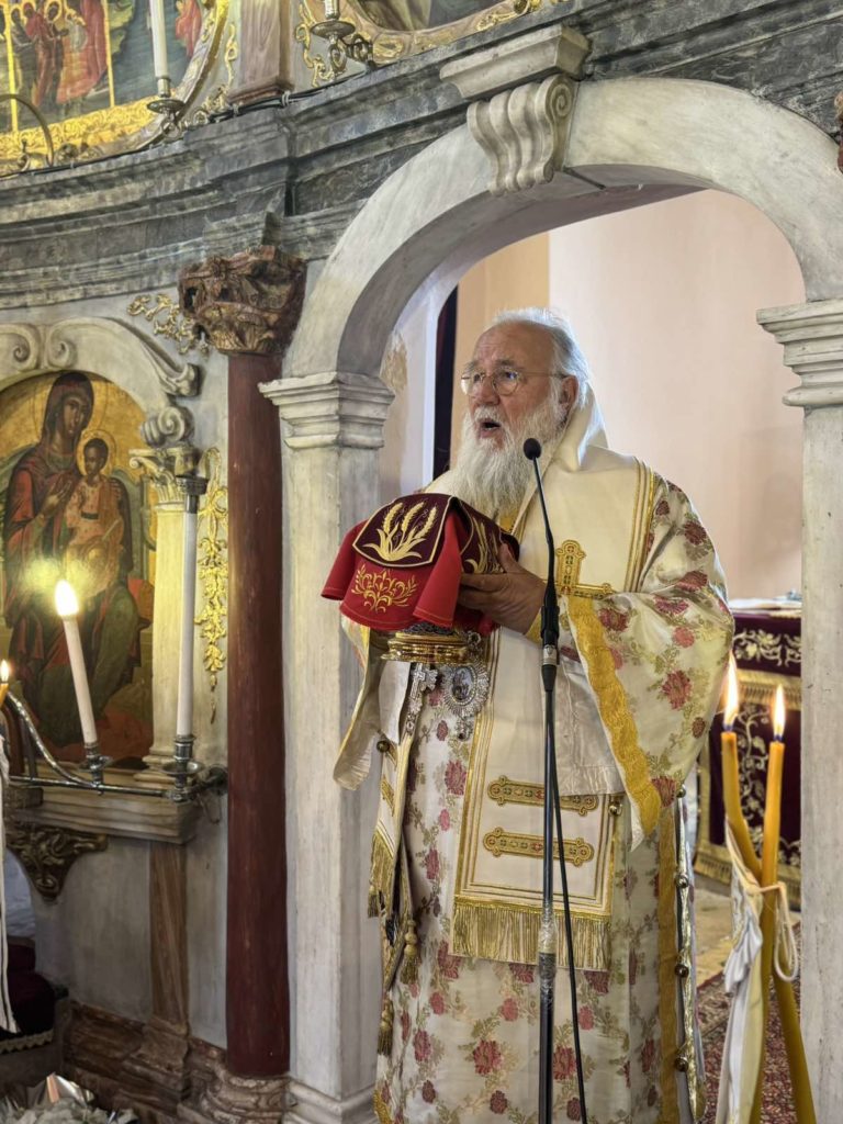 Αναφερόμενος στην εορταζομένη Αγία Κερκύρα, ο Σεβασμιώτατος την παρουσίασε ως φωτεινό παράδειγμα πίστεως και ελευθερίας. Τόνισε ότι η νεαρή βασιλοπούλα, φωτισμένη από το κήρυγμα των Αγίων Αποστόλων Ιάσονος και Σωσιπάτρου, επέλεξε συνειδητά το Χριστό, υπερβαίνοντας ακόμη και τους δεσμούς της συγγενείας και της εξουσίας. Οι Άγιοι επτά συναθλητές της Αγίας αρχικώς υπήρξαν δεσμώτες και φύλακές της κατά τον εγκλεισμό της στη φυλακή. Η κράτησή της έγινε κατόπιν διαταγής του ειδωλολάτρη πατρός της, βασιλέως Κερκυλίνου. Όμως, στη συνέχεια, οι ίδιοι προσχώρησαν στην πίστη και ανέδειξαν με τη θυσία τους το μεγαλείο της ομολογίας. Έτσι, το μαρτύριό τους κατέστη θεμέλιο της τοπικής Εκκλησίας, η οποία αγιάζεται και στερεώνεται δια του αίματος των Αγίων της.