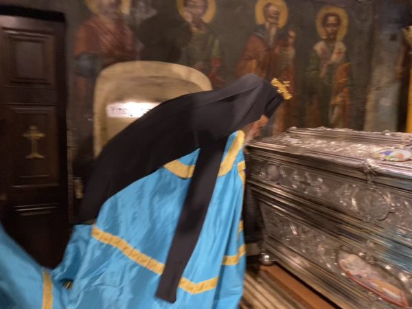 Συλλειτούργησαν ο αρχιμανδρίτης π. Χριστόδουλο Τριαντάφυλλος ιεροκήρυκας του προσκυνήματος και ο πρωτοπρεσβύτερος π. Γεώργιος Βλάχος προϊστάμενος του ιερού προσκυνήματος, αλλά και οι ιεροδιάκονοι π. Ανδρέας και π. Νεκτάριος.