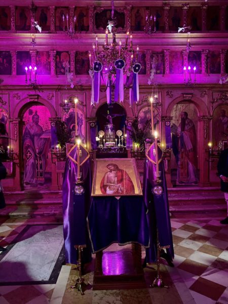 Ο Σεβασμιώτατος κατά τον όρθρο της Μεγάλης Τρίτης, χοροστάτησε και μίλησε στην ενορία της Αγίας Τριάδος στο μπόργο της Γαρίτσας, στην πόλη της Κέρκυρας.