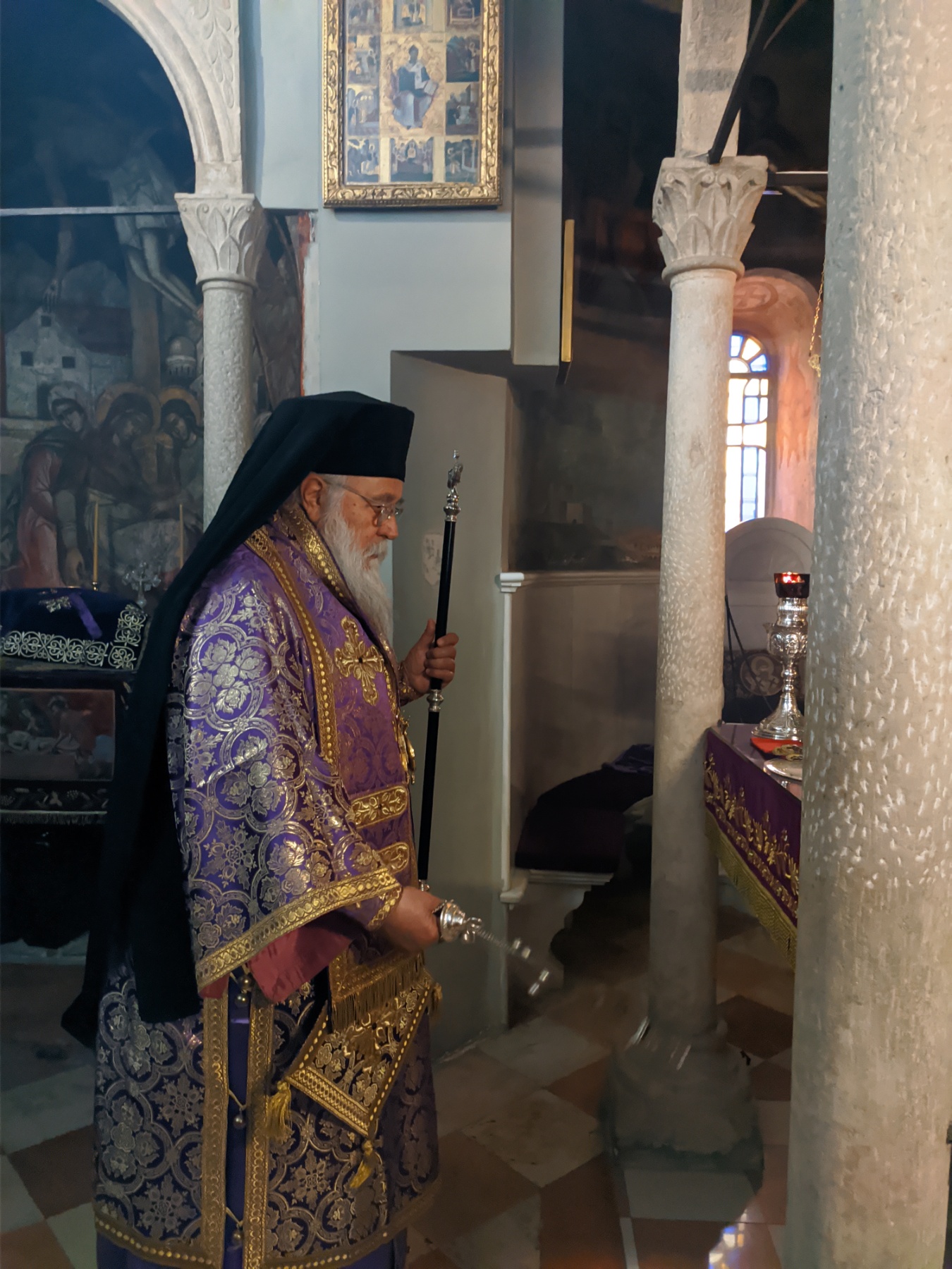 Στην συνέχεια, μετέβη στο Ίδρυμα Χρονίως Πασχόντων « Η Πλατυτέρα», στον ναό του οποίου βρίσκεται ο τάφος του μακαριστού Μητροπολίτου, και τέλεσε και εκεί τρισάγιο.