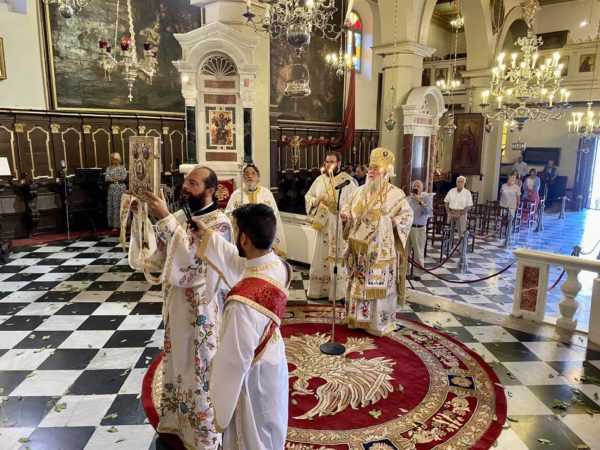 Με την δέουσα εκκλησιαστική τάξη εορτάστηκε η μεγάλη εορτή της Πεντηκοστής στο νησί των Φαιάκων. Στον Ιερό Μητροπολιτικό Ναό της Υπεραγίας Θεοτόκου Σπηλαιωτίσσης και Αγίας Θεοδώρας, ιερούργησε σήμερα ο Σεβασμιώτατος Μητροπολίτης Κερκύρας, Παξών & Διαποντίων νήσων κ. Νεκτάριος με τη συμμετοχή των ιεροδιακόνων του, πλήθος επισκεπτών και ντόπιων πιστών και την παρουσία του βουλευτή Κέρκυρας κ. Γκίκα και του αντιπερειφερειάρχη κ. Ζορμπά.