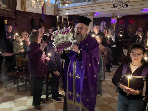 Ο Μητροπολίτης ευχήθηκε στους ενορίτες καλή ανάσταση και εξέφρασε την χαρά του που βρέθηκε και πάλι στον ναό.