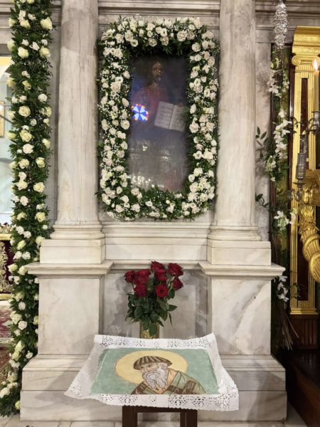 Όταν εκ πίστεως ικετεύουμε τον Άγιο μας, λαμβάνουμε απάντηση στα αιτήματά μας. Ο Άγιος πάλεψε με την αμαρτία. Δεν έθεσε το θέλημά του ως προτεραιότητα, αλλά το θέλημα του Θεού. Δεν εργάστηκε για τον εαυτό του, αλλά για τον Θεό. Γνώρισε την αλήθεια και ελευθερώθηκε. Ο Άγιος εν ταπεινώσει έδωσε τα χαρίσματά του στον Θεό και στον συνάνθρωπο και γι’ αυτό έζησε την ένωση με τον Θεό, έλαβε την κένωση του Θεού ως πληρότητα της παρουσίας του Θεού. Ο Άγιος έζησε ασκητικά. Αποξενώθηκε από κάθε τι που τον κρατούσε δέσμιο στα επίγεια. Πατούσε στη γη, αλλά έψαυε τον ουρανό. Έτσι, σήμερα ίσταται ανάμεσά μας ζων και πρεσβευτής μας προς τον Θεό.