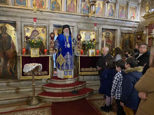 Στην ομιλία του ο Σεβασμιώτατος αναφέρθηκε στο πρόσωπο του Τιμίου Προδρόμου που είναι το κυρίαρχο πρόσωπο της εορτής των Θεοφανείων. Ιδιαίτερα δε, ο Τίμιος Πρόδρομος χαρακτηρίζεται για το κήρυγμα της μετάνοιας όπου κάλεσε τους ανθρώπους από την έρημο του Ιορδάνου να μετανοήσουν και δεν δίστασε να ελέγξει την αμαρτία του βασιλιά Ηρώδη. Γι΄ αυτό και μας διασώζει ο ευαγγελιστής Ιωάννης ότι ο Πρόδρομος συνελήφθη και παρεδώθη για το ελεγκτικό του κήρυγμα. Ο Ιησούς μετά την βάπτιση του μαθαίνει το γεγονός της σύλληψης του Τιμίου Προδρόμου και αναχωρεί για την έρημο όπου θα ασκηθεί, θα νηστέψει επι σαράντα ημέρες και θα προετοιμαστεί για την επίγεια αποστολή Του. Ο πρώτος προορισμός ήταν η Γαλιλαία των εθνών όπου συνάντησε έναν λαό εξουθενωμένο από την αμαρτία την πτώση και την φθορά καθήμενό στη χώρα και στη σκιά του θανάτου και σε αυτό το λαό μεταφέρει το φως της Θείας Επιφανείας Του. Αφυπνίζει αυτό το λαό με τον λόγο του μετά πολλαπλά θαύματα του αλλά κυρίως με την θεϊκή Χάρι Του.