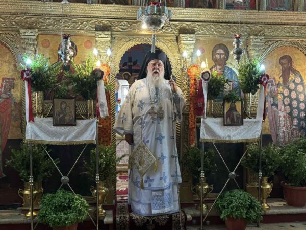 Ο Σεβασμιώτατος συλλειτούργησε με τον ιεροκήρυκα της ιεράς Μητροπόλεως αρχιμανδρίτη Σεραφείμ Λινοσπόρη και αρκετούς εφημερίους της νότιας Κέρκυρας.
